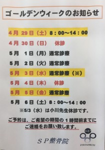 ゴールデンウイークのお知らせ